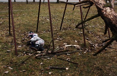 Pavel Alexeev, Композиционно в кадре очень много оборванных линий, что создает напряжение, тревогу. Острые линии направленные на упавшего ребенка Вариант кадрирования Вариант кадрирования как бы добивают его, вот эта конструкции Вариант кадрирования Вариант кадрирования пригвоздили его к земле. Плюс цвет, обгоревшие и обломанные палки... дальше не хочется писать, думаю понял. Композиция больше подходит для сцены охоты на волка в завершающей стадии.