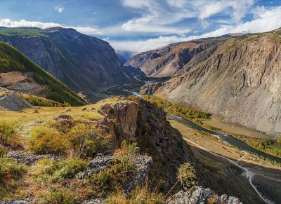 Горный Алтай. Вид на долину реки Чулышман с перевала Кату-Ярык.