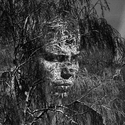 , Фон - дерево, два слоя портета: первый - difference, второй - overlay