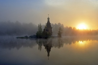 осень на Вуоксе. Церковь Андрея Первозванного... Эта постройка вошла в книгу рекордов Гиннеса, как единственная в мире церковь, построенная на крошечном острове, фундаментом которой служит монолитная скала, выступающая из воды. К берегу от храма ходит паром. Церковь действующая, службы проходят по расписанию. |
