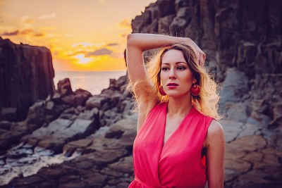 , на девушку надо смотреть, а не отвлекаться на бездушные скалы.
