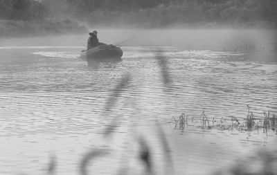 утро река лодка туман