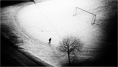 Вот например мне не понятно, почему обсуждаемая работа называется MI/НИ Я не автор, но попытаюсь.Вечер. Одинокий человек бежит по протоптанному кругу. Пустое поле. Пустые ворота. Снег. Одинокое дерево-зритель... |