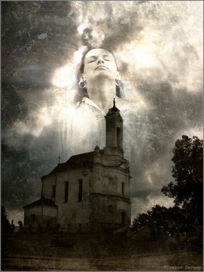 бессмысленный коллаж, .... костел-девушка-вдохновение ...