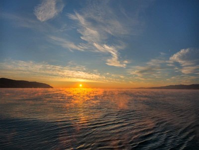 Байкал в районе посёлка Култук. Дымится из-за ночного мороза в -6.