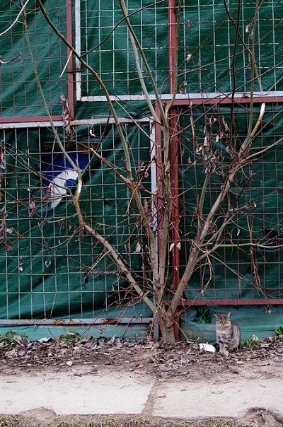 Zer, спасибо! Наверное, так действительно лучше.- не квадрат конечно но тогда увеличиваются в масштабе и более плотно компонуются три играющих элемента 1.кошка 2. бело-синяя дырка в тенте и 3. стык решеток Вариант кадрирования имхо )) |