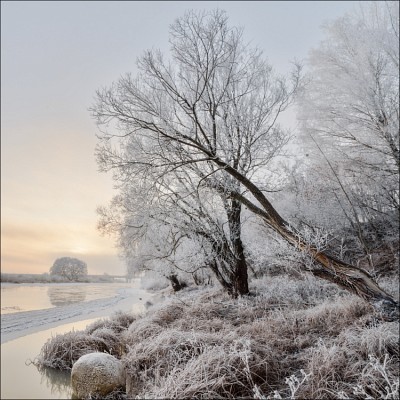 Утро, зима, иней, река Друть
