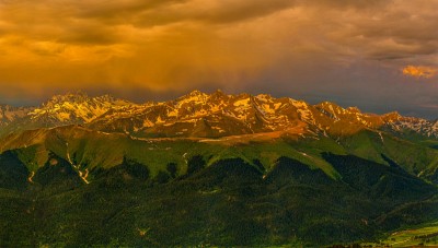 Кавказ. Весна. Рассвет, при этом находила гроза.