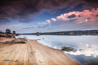 В небе тучи розовые, а в отражении - белые. Может имело смысл и на воде градиент добавить для реализма?