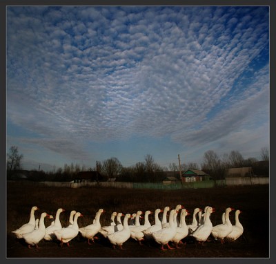 расскажи об этом чуть подробнее. Лариса Колесникова, снимок мне интересен именно этой связью (рябь на небе и в гусином стаде), конечно можно навыдумывать всякой литературы, но не хочется )