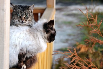 У кота все под контролем, так что кошка сидит абсолютно спокойно :-)