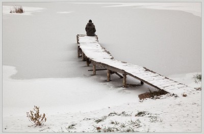 Вспомнилась сказка про волка, как он рыбу на хвост ловил. Походу, у этого рыбака удочка примерзла, отпустить жалко.