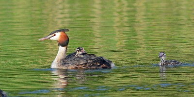 Чомги катают птенцов на спине, что- бы они не замерзли.