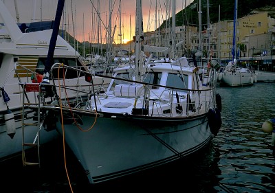 Корсика. Яхтенная стоянка в бухте. Вечер.