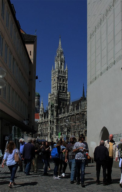Ратуша в Мюнхене. Новая Ратуша в Мюнхене прекрасна как в свете солнечных лучей, так и необычайно красива в темное время суток, когда включаются сотни специальных прожекторов, освещающих ее даже самые мелкие архитектурные элементы.все детали здания продуманы до мелочей: даже, казалось бы, простые водосточные трубы, предназначение которых - «собирать» дождевую воду, имеют фантастическую форму. Внимательный гость города сможет угадать в желобе очертания каких-то таинственных и сказочных существ.http://rasfokus.ru/upload/comments/ad878dd8f8806919c4a61d8dfb79ba6e.jpgфасад монументального сооружения, достигающий в высоту почти 90 метров, украшают скульптуры исторических личностей и персонажей из многочисленных немецких легенд. Здесь можно увидеть графов и католических святых, герцогов и королей из древнейшей династии Виттельсбахов, химер и других мифических персонажей. апрель 2015г Германия |