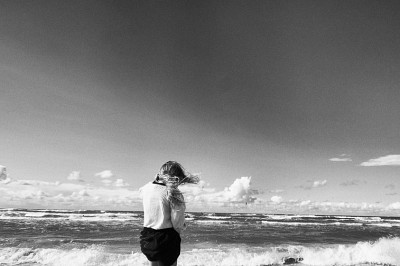 Если не прав поправьте, но сугубое имхо... фигуру охота видеть связующим звеном между линиями неба и прибоя Вариант кадрирования .. если взаимодействие с верхней частью есть , чему помог ракурс, тональное совпадение, развевающие волосы, то с нижней частью , нмв, дисгармонирует черное пятно Вариант кадрирования , отрывая фигуру и подчеркивая, жесткость обрезанного низа..