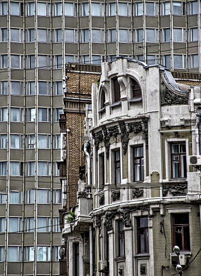 Евгений, ваша работа не выходит из головы, присмотревшись понял - телевик сжал эти непохожие друг на друга здания и создал эффект трасформации - заднее здание со своими окнами + среднее здание из кирпича = на выходе ожурная изысканная архитектура здания на переднем плане. Метаморфозы в работах придают особый шик