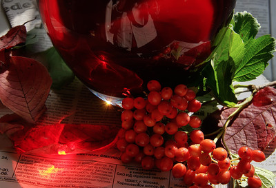 Красная ваза, красная рябина, красные блики...