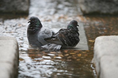 на перекрестке течения Голуби,явно,были полностью поглащены своими думами...Мне оставалось только выбрать нужный ракурс,чтобы это "бездействие действа" перевести в цифровой формат с помощью моей двацатки.Приняв упор лежа вдоль облагороженного ручья,я сделал серию снимков ...Еще некоторое время наблюдая за этой практически неподвижной парочкой под мерное журчание воды, ...мне показалось,что они похожи на семейную пару,уставшую от долгого "одиночества вдвоем". "Все как у людей",-подумал я,вставая и погружаясь в раздумья о собственном бытие. |