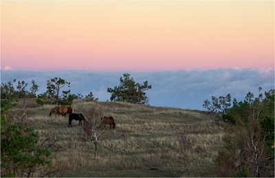 Лошадки на фоне персикового утра