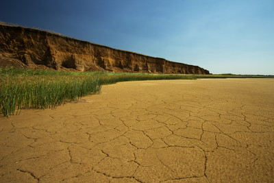 Длительный отлив вместе с жарким солнцем придают побережью Таганрогского залива почти что инопланетный вид.