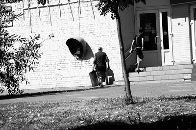 А теперь тихо мирно.... А я ведь тоже не знаю( Обе фигуры нравятся. Тень нравится- как второй "багаж". Руки и ноги двух фигур- как зеркало, через дерево, которое угол закрывает.... Кирпичики и там и сям.... Вообщем, ес))) |