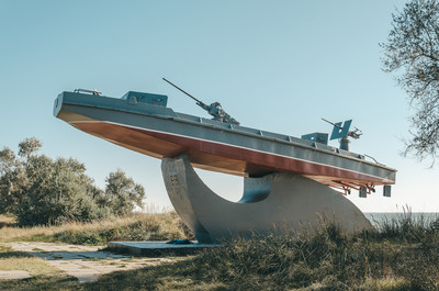 Мотобот. Во время Керченско-Эльтигенской десантной операции 01.11.1943 года не дошёл до берега всего 120 метров. Поднят в октябре 1977 года, восстановлен на заводе «Залив». Посёлок Героевское, Республика Крым, Россия. |