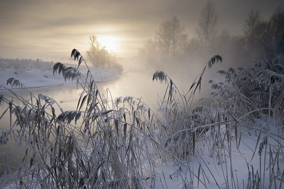 январь, утро , туман,река..