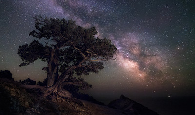 В можжевеловой роще Тихая майская ночь. Гуляет лёгкий ветерок, издали доносится шум прибоя, а воздух веет ароматом можжевельника. Впереди виднеется острый пик мыса Капчик, а над морем проплывает Млечный Путь — маленькая частица бескрайней Вселенной |