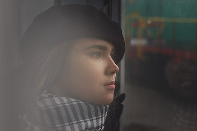 )Знакомая уже модель...Всё-таки едет обратно домой...грустная...)А ,может и наоборот,в столицу-диагональ слева направо- приход...)и взгляд наполнен ожиданием...)