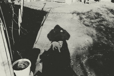 Соглашусь, что просится другое кадрирование...дабы убрать не информативные детали из этого кадра. Имхо главное в кадре это собачка и тень...на этом строится кадр. Скажем так....основные элементы конструкции кадра. Мнение.