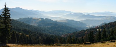 Вид на горы в контровом свете, начала ноября.