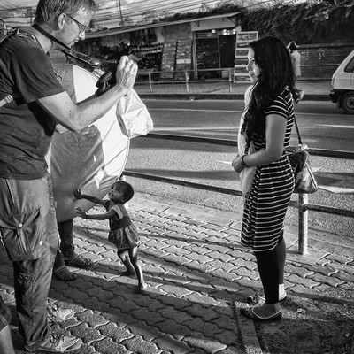 ultimar, мне кажется, невозможно реализовать кулисы при кадрировании. Они могут получиться только сами собою при съёмке. Вы говорите, что здесь главная маленькая девочка, а двое взрослых по бокам являются её обрамлением. И об этом же пишет уважаемый мною olux, Уж не знаю - удалось ли В первом варианте справа даже больше было отрезано, если помнишь, но тогда - не форматно. 1.Главный персонаж-девочка и эмоция-это очевидно. .Но для меня это не столь очевидно. Когда я смотрю на Ваш чб вариант, то девочку вовсе не вижу. Взгляд поадает на девушку в полосатом платье и на лицо-руки фотографа. Уже после вспоминаю, что где-то внизу эта молекула, ради которой всё. Когда смотрю на полный кадр в цвете, вижу только фотографа. Допускаю, что смотрю неправильно, что как увиделось, так и не получается иначе. Но мне кажется, искусственно создать кулисы кадрированием не получилось. Да и получиться не должно было. |