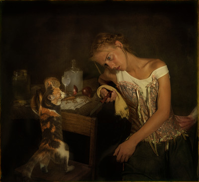 кошка здорово под играла. настроение хорошо передано,только историю каждый свою придумает.