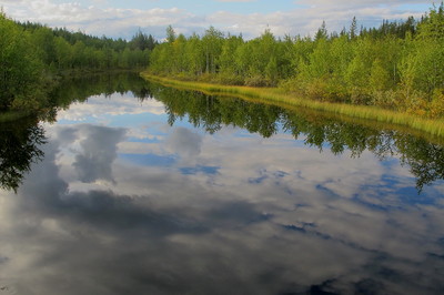 Красивое место располагает к созерцанию, приятно тянутся облака, и всё-таки акцент я бы сместил не на их отражение, а выше, к чудесным берегам, приблизил бы их к зрителю  . На СП отражение облаков и просини вышли явно светлее,чем в небе  , а это неестественно, отражающая поверхность всегда тусклее освещающего ее источника света.