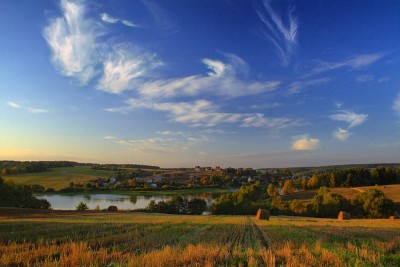 ещё чуть-чуть - и зайдёт солнце... золотистый притягательный свет сменится кромешной тьмой ночи... но запах свежих снопов и приятная прохлада, исходящая от водной глади, просуществуют до утра... а завтра всё повторится...