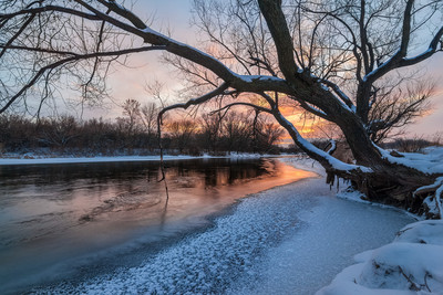 Румяная заря Зима вершит свои законы и устои, Рукою крепкою под лед волну укроет, Зарю румяную на гладь зерцал прольет, Хладны ветра в упряжку запряжет, В санях помчит, завьюжит, заметет, И на ветвей склонившиеся плети Накинет серебра заснеженные сети (Аланец А.) |
