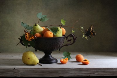 Спасибо! Вы правы, пространства много, хотела обрезать, тогда бабочка упирается, пробовала переместить абрикосы, тоже не понравилось... в результате оставила, как есть