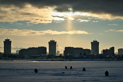 После циклонов, принесших снегопады, выдался первый солнечный денек. Озеро облюбовали рыбаки и фотографы. Уже возвращались, когда увидел солнечный луч.
