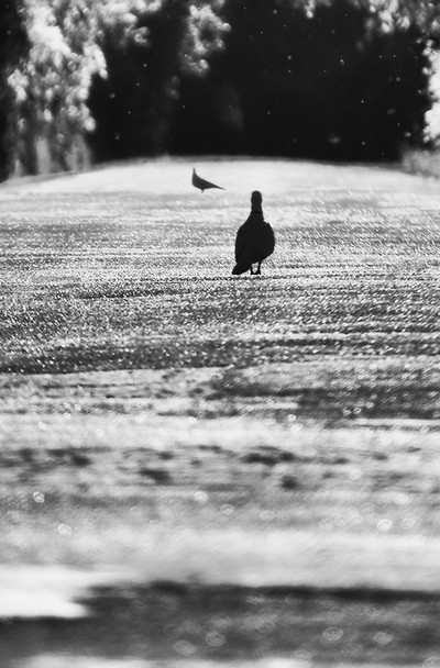 "И чего это она там лежит и щелкает? Отойду-ка я от греха подальше...", подумал голубь и отошел.