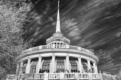 На инфракрасную камеру даже слабые облака получается самым зрелищным элементом. Слабая облачность была конечно, но на обычной камере она почти не заметна