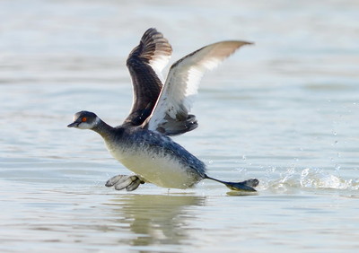 Черношейная поганка подалась в бега.