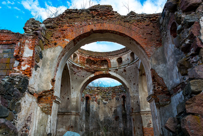 Без названия Гродненская обл. Кореличский р-он. д.Березовец.Свято-Покровская церковь построенная в 1889г.из крупных,обработанных валунов,которые по специально устроенному настилу везла не видящая высоты (слепая)лошадь.Храм,построенный в ретроспективно-русском стиле,имел большие окна,три дверных проема и купольный световой барабан в завершении.Храм разрушен в годы Первой мировой войны.В1915г.вдоль р.Сервечь проходила линия обороны.Около столетия руина продолжает удивлять своим величием и красотой. |