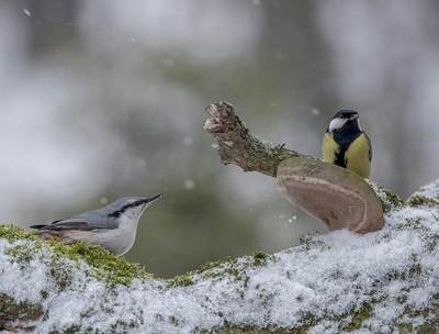 Поползень и большая синица.