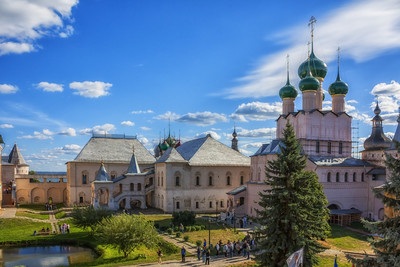 Ростовский Кремль Росто́вский кре́мль (Митрополи́чий двор) — бывшая резиденция митрополита Ростовской епархии, расположенная в центре Ростова на берегу озера Неро. Ростовский кремль был построен в 1670—1683 гг., по единому замыслу заказчика — митрополита Ионы Сысоевича. После того, как в 1787 г. было принято решение о переносе архиерейской кафедры из Ростова в Ярославль, Ростовский митрополичий двор утратил свою функцию, был оставлен без внимания и постепенно обветшал. Однако благодаря просвещенному ростовскому купечеству и на средства купечества в 1860-е и в 1880-е гг. архитектурный комплекс был отреставрирован. В 1886 г. Кремль принял под свое покровительство наследник императорского престола, будущий царь Николай II. В 1910 г. Государственная дума законодательно закрепила общероссийский статус музея, постановив отпускать из казны деньги на его содержание. Многие памятники ансамбля были повреждены в результате смерча 23 августа 1953 года. Позднее все они были отреставрированы |