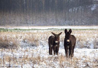 Diese Großesel leben GANZJÄHRIRJG FREILEBEND in den Steverauen von Olfen im Münsterland.