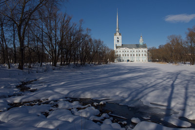 Когда деревья были маленькими, а тени большими. Церковь Петра и Павла - редчайший памятник "петровского барокко" в Ярославле расположен на бывшей территории Большой мануфактуры купцов Затрапезновых, именуемой ныне Петропавловским парком в честь одноименного храма. Нигде в городе не встретить похожего творения зодчих. В композиции храма легко улавливаются черты Петропавловского собора в Петербурге. |