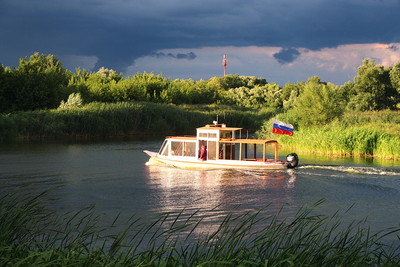 Прогулочный катер на канале Цна в г. Тамбове перед грозой