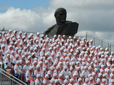 Но это и не из нашей реальной жизни - в школах ничего подобного нет. Просто какой-то очень рьяный управленец в 2013 решил выслужиться, согнал (пригласил т.е.) на праздник города Солигорска несколько отрядов из пионерского лагеря, сторого-настрого приказав быть в галстуках. Там тоже выслужились - нашли детям ещё и одинаковые шапочки. Постановка? Постановка. Для галочки. А вот в жизни что-то я пионеров не замечаю сейчас - не видно их. Идея не прижилась. |