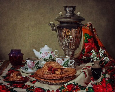 классический натюрморт на тему масленицы. Среда- лакомка.